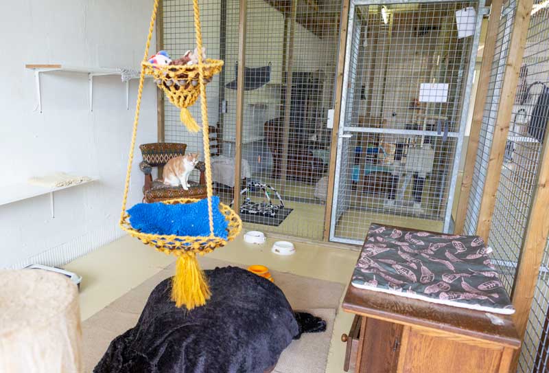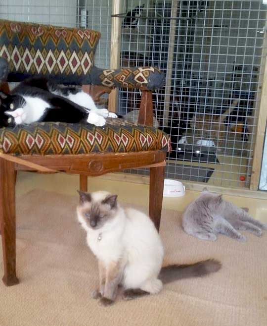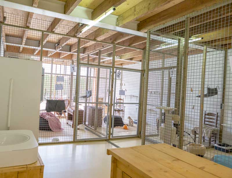 Het kattenpension is in een ander stuk gevestigd dan het hondenpension. Doordat de katten geheel afgezonderd zitten van de honden wordt er een volledige rust voor de katten gecreëerd.